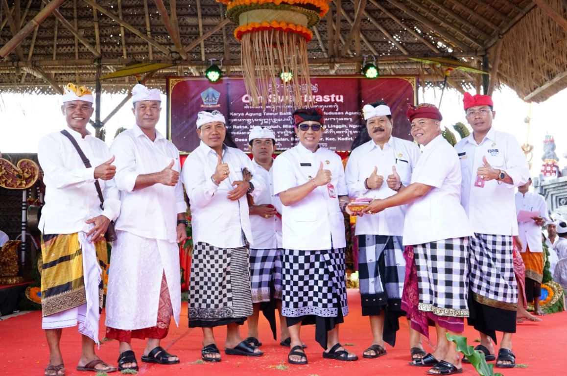 Seperti halnya ditunjukkan kali ini, Senin, (5/9) siang, Bupati Sanjaya bersama Ketua dan anggota DPRD, Sekda dan OPD terkait di lingkungan Pemkab Tabanan, Camat dan unsur Forkopimcam Kediri, menghadiri undangan Karya Agung Tawur Balik Sumpah, Padudusan Agung, Menawa Ratna, Mamungkah, Melaspas, Ngenteg Linggih, Ngusaba Desa yang diselenggarakan di Pura Desa, Desa Adat Sanggulan, Desa Banjar Anyar, Kediri, Tabanan. Nampak juga, Brigjen Pol Nengah Wiratmaja, Perbekel, Bendesa Adat, serta tokoh masyarakat setempat turut hadir menyambut kedatangan Bupati beserta jajaran.