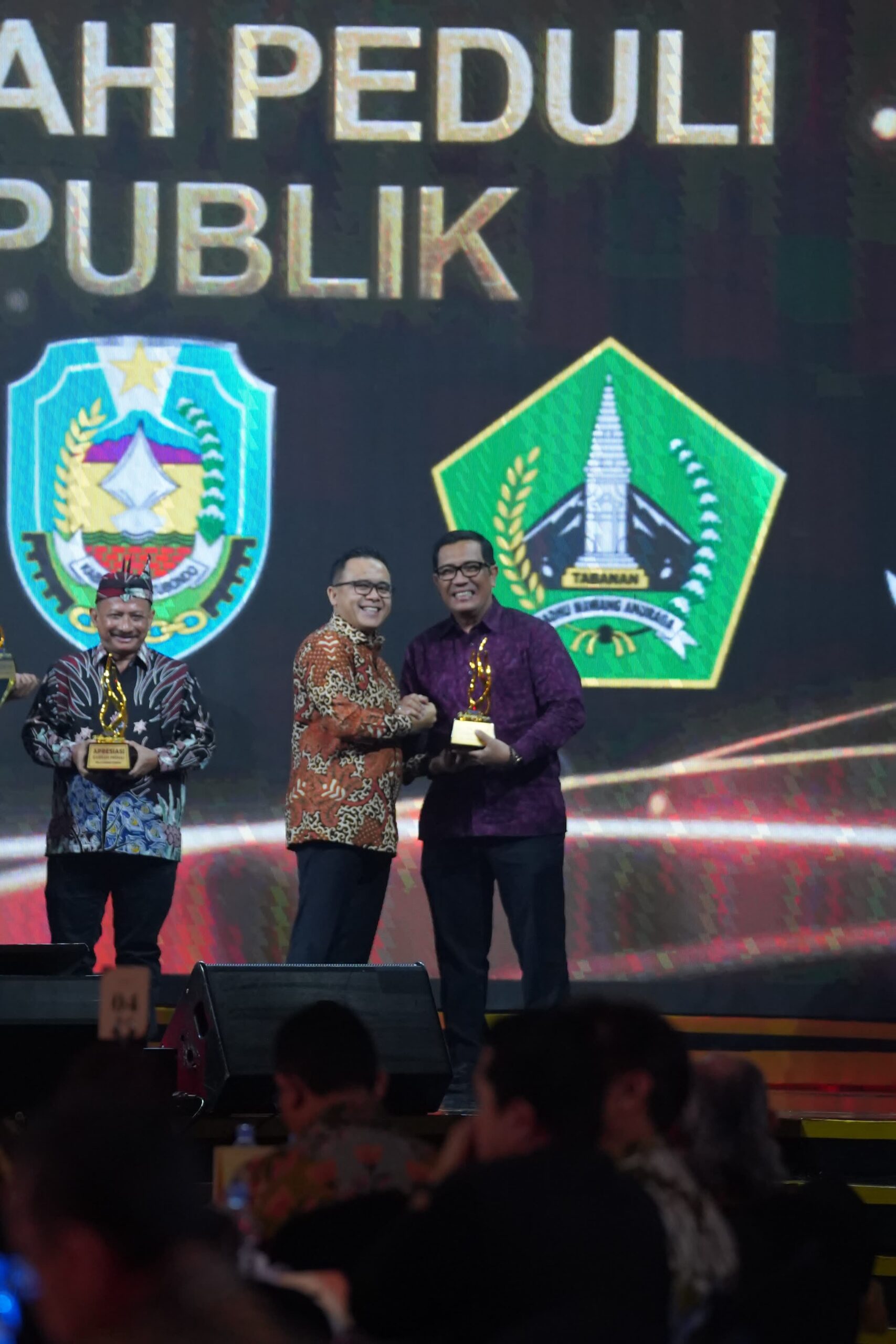 Tak hentinya menorehkan prestasi, Kabupaten Tabanan kali ini berhasil dinobatkan sebagai Daerah Peduli Pelayanan Publik berskala Nasional, oleh Kompas TV yang diterima langsung oleh Bupati Tabanan, Dr. I Komang Gede Sanjaya, S.E.,M.M dalam puncak acara Ulang Tahun Kompas TV ke 12 Tahun, di Golden Ballroom, The Sultan Hotel Residence Jakarta, Senin Malam, (11/9).