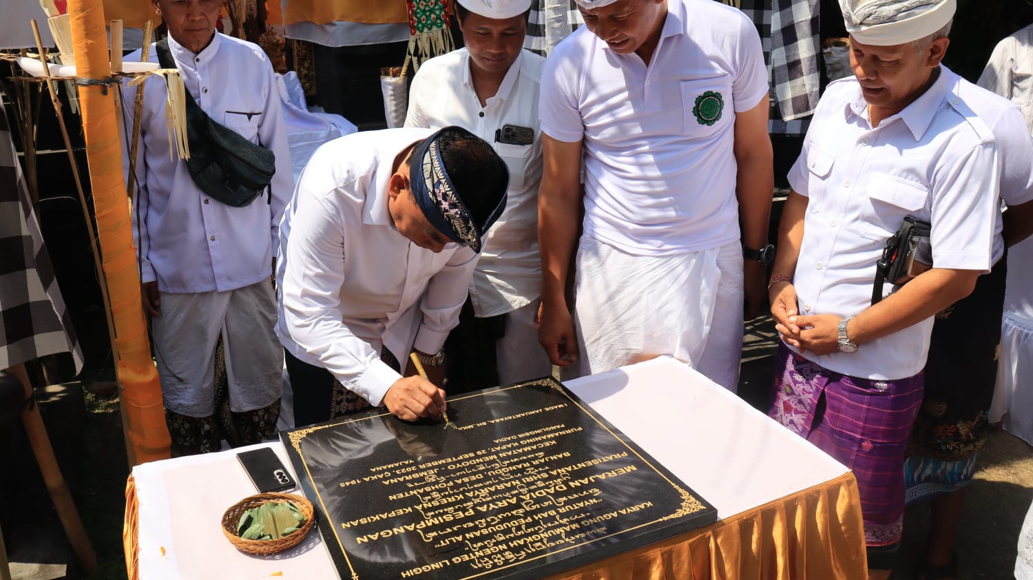 Bupati Jembrana I Nengah Tamba menghadiri Karya Agung Mamungkah Wraspati Kalpa lan Padudusan Alit di Merajan Dadia Pesemetonan Pretisentana Sri Nararya Kresna Kepakisan Banjar Rangdu, Desa Pohsanten, Wraspati Paing Wuku Tambir, Kamis (28/9).