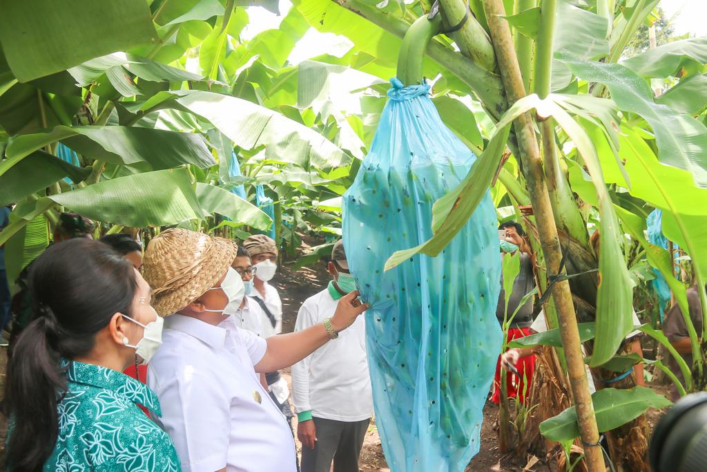 Keterangan foto: Bupati Jembrana I Nengah Tamba menghadiri panen perdana pisang Cavendish di Koperasi Mitra Nusantara Abadi Banjar Segah, Desa Asah Duren, Kec. Pekutatan, Rabu (3/11)/BN
