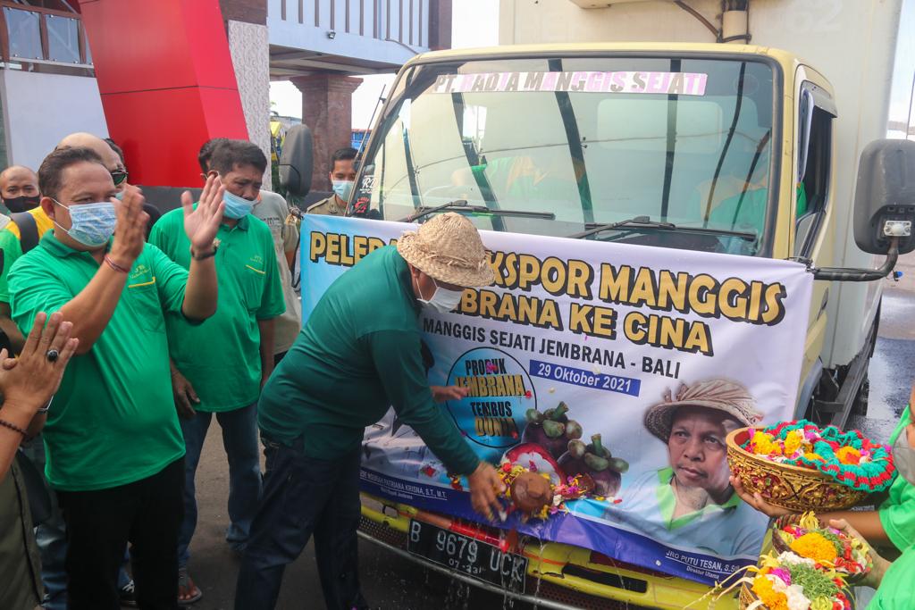 Hal itu terungkap saat  Bupati Jembrana I Nengah Tamba melepas ekspor manggis ke Negara China di Terminal  Negara, Jumat (29/10). “Saya merasa sangat berbahagia sekali, apa yang pernah  kita cetuskan buah manggis sebagai salah satu komoditi ekspor di Kabupaten Jembrana, berhasil dicanangkan dan dilakukan oleh  PT. Radja Manggis sejati. Kedepannya saya ingin  jangan  hanya mengandalkan pohon yang sudah ada, harus mulai menanam bibit yang baru sehingga nanti bisa ditingkatkan jumlah ekspornya termasuk pangsa pasar juga harus diperluas, tidak  hanya di Negara China. Selain itu komoditi buah-buah yang lain tentu yang  sesuai dengan minat dan kebutuhan pangsa pasar,” Kata Bupati Tamba.