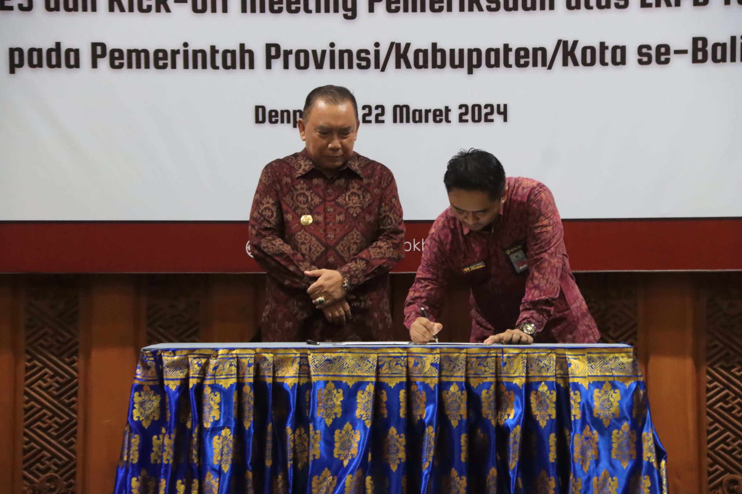 Sementara itu, Kepala BPK RI Perwakilan Bali Gusti Ngurah Satria Perwira menyampaikan, kegiatan ini dilaksanakan setiap tahun, namun dilaksanakan secara serentak baru dalam 2-3 tahun terakhir. Dijelaskan, sesuai pasal 31 ayat 1 UU No. 17 tahun 2003 tentang Keuangan Negara dimana menyebutkan Gubernur, Walikota dan Bupati menyampaikan rancangan peraturan daerah tentang pelaksanaan APBD kepada DPRD diantaranya berupa laporan keuangan yang telah diperiksa BPK selambat-lambatnya 6 bulan setelah tahun anggaran.