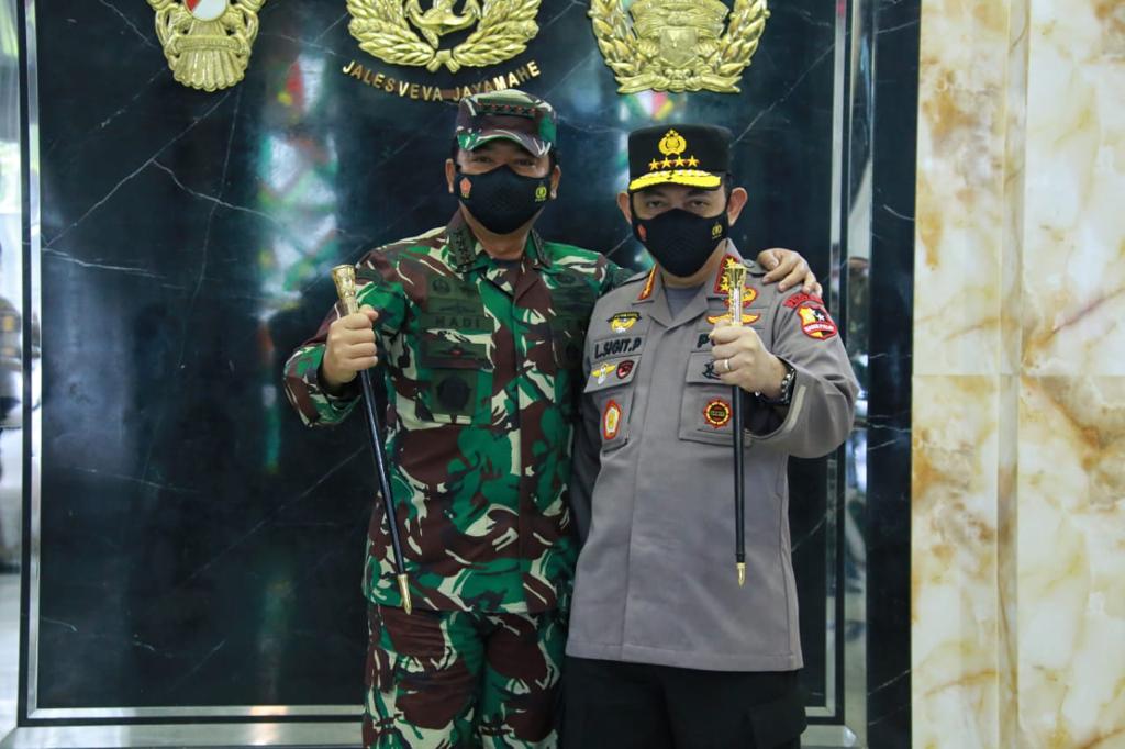 Panglima TNI Marsekal Hadi Tjahjanto bersama dengan Kapolri Jenderal Listyo Sigit Prabowo melakukan kunjungan kerja ke Bali dalam rangka memastikan kepatuhan masyarakat Bali terhadap penerapan 3 M (Memakai Masker, Mencuci Tangan dan Menjaga Jarak) dalam Pemberlakuan Pembatasan Kegiatan Masyarakat (PPKM) Jawa-Bali.
