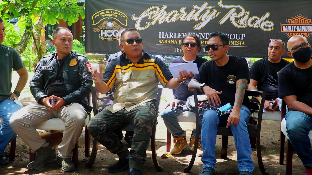 Diterima Bupati Jembrana, I Nengah Tamba dan Kapolres Jembrana I Ketut Gede Adi Wibawa riding yang dibalut penyerahan bantuan sosial tersebut menyerahkan uang tunai 15 juta rupiah dari HOG yang diserahkan oleh rama putra kepada masyarakat penderita sakit yang diterima langsung oleh Bupati Jembrana I Nengah Tamba.