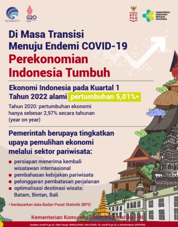Koordinator Bidang Data dan Informasi Satgas Covid-19 Kabupaten Buleleng Ketut Suwarmawan saat menyampaikan rilis hariannya, pada Jumat, (10/6/2022) mengatakan berdasarkan kutipan dari data Badan Pusat Statistik (BPS) Nasional, bahwa ekonomi Indonesia pada Kuartal 1 Tahun 2022 mengalami pertumbuhan 5,01 persen, dibandingkan pada Tahun 2020 yang hanya sebesar 2,97 persen secara tahunan.