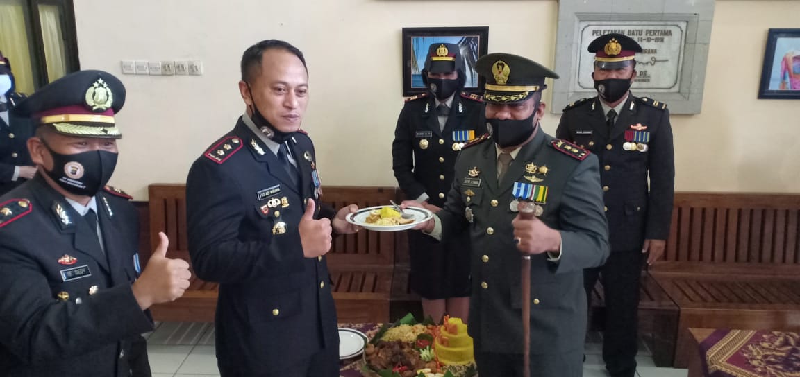 Puncak acara dilakukan dengan pemotongan tumpeng yang diserahkan Dandim Jembrana kepada Kapolres Jembrana. Acara selanjutnya dilanjutkan dengan acara ramah tamah, namun tetap memperhatikan protokol kesehatan. (Komang Tole)