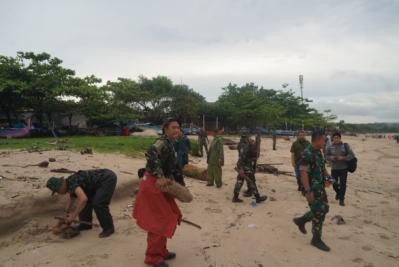 Kegiatan ini tidak hanya membersihkan sampah, tapi juga bentuk kepedulian kita Bersama terhadap lingkungan dan keindahan Bali, kebersihan pantai adalah tanggung jawab Bersama, para personil TNI dengan cekatan memungut sampah plastic, mengangkat ranting, hingga merapikan area pantai.