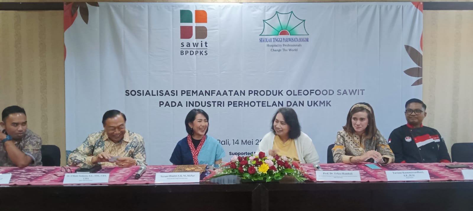 Sekolah Tinggi Pariwisata Bogor bersama Badan Pengelola Dana Perkebunan Kelapa Sawit (BPDPKS) didukung oleh IPB Internasional mengadakan kegiatan Workshop Sosialisasi Pemanfaatan Produk Oleofood Sawit (Cocoa Butter Substitute, Non-Dairy Creamer, Frying Fat, Shortening) pada Industri Perhotelan dan Bisnis Kuliner.