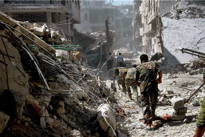 Ilustrasi akibat perang Suriah, gedung bertingkat luluh lantah