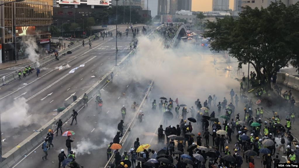 Polisi dalam sebuah pernyataan mengatakan, “Pemrotes yang radikal kini sedang menduduki Hartcourt Road di Admiralty, merusak kantor-kantor Pemerintah, dan berulangkali melemparkan bom bensin ke dalam (gedung-gedung itu).”