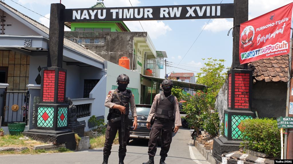 Selama penggeledahan polisi bersenjata lengkap terlihat mengamankan lokasi. Warga pun diminta polisimenjauh dari lokasi. [ys/ab] (voa)