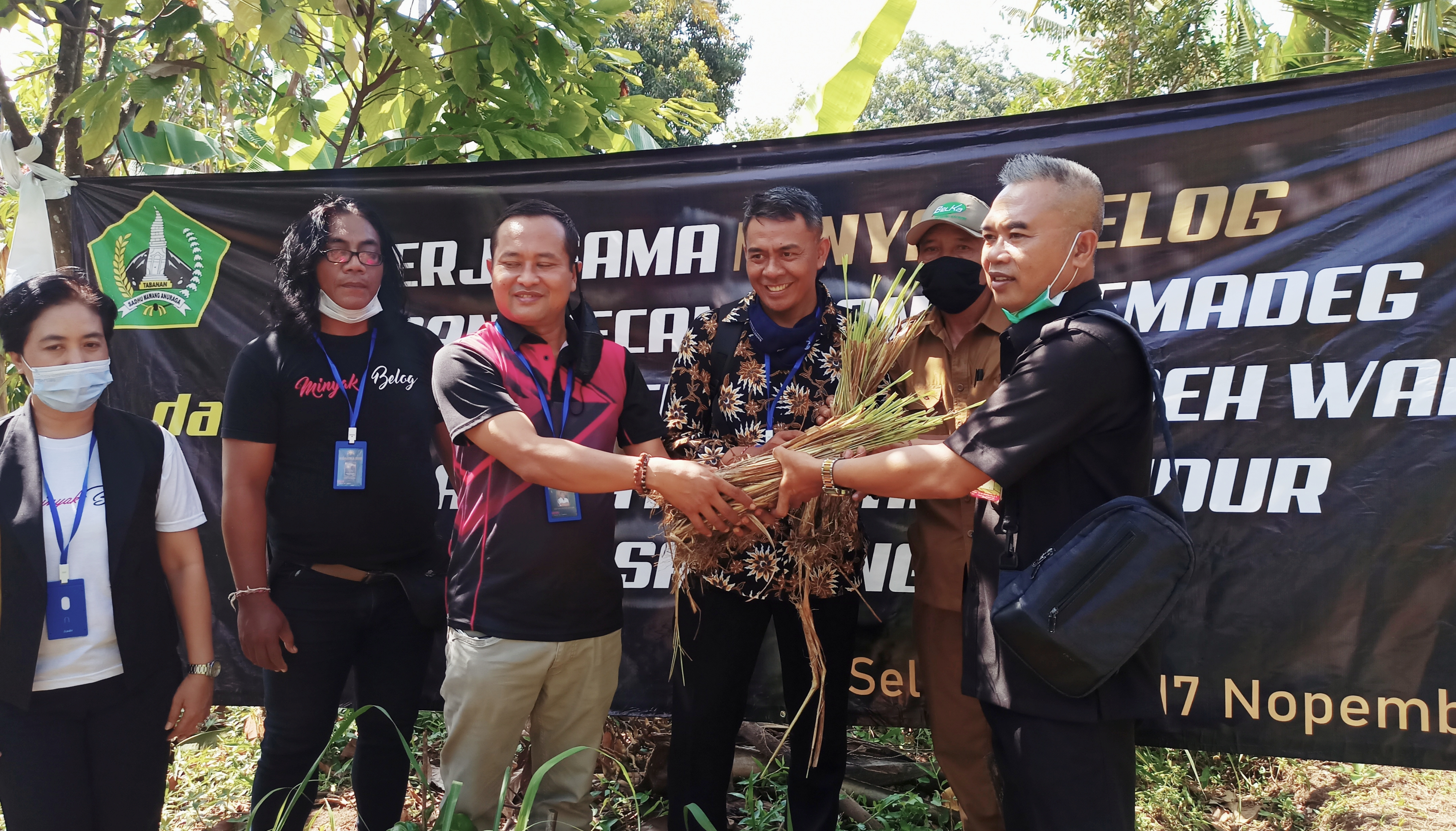 PT. Usadha Bhakti Buana dan Founder Belog Oil, Jero Mangku Belog menyerahkan 6.000 bibit Sereh Wangi dan 20.000 bibit budi daya tanaman kepada Camat Selemadeg I Putu Gede Wirawan dan Perbekel Desa Berembeng Nyoman Widastra bertempat di Desa Berembeng, Kecamatan Selemadeg, Tabanan, Selasa (17/11/2020).