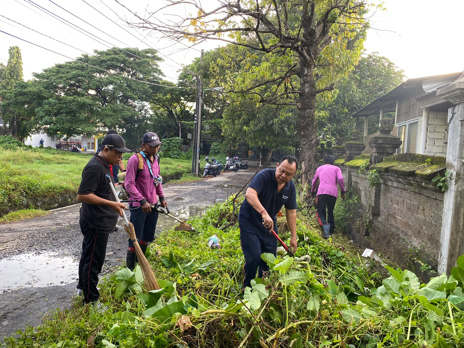 Lebih lanjut dikatakannya, dalam pelaksanaan ini pihaknya  bersama seluruh perangkat desa, dibantu warga serta tim kebersihan desa melaksanakan pemotongan rumput liar, pembersihan selokan, serta merapikan tumbuhan yang menutupi selokan.