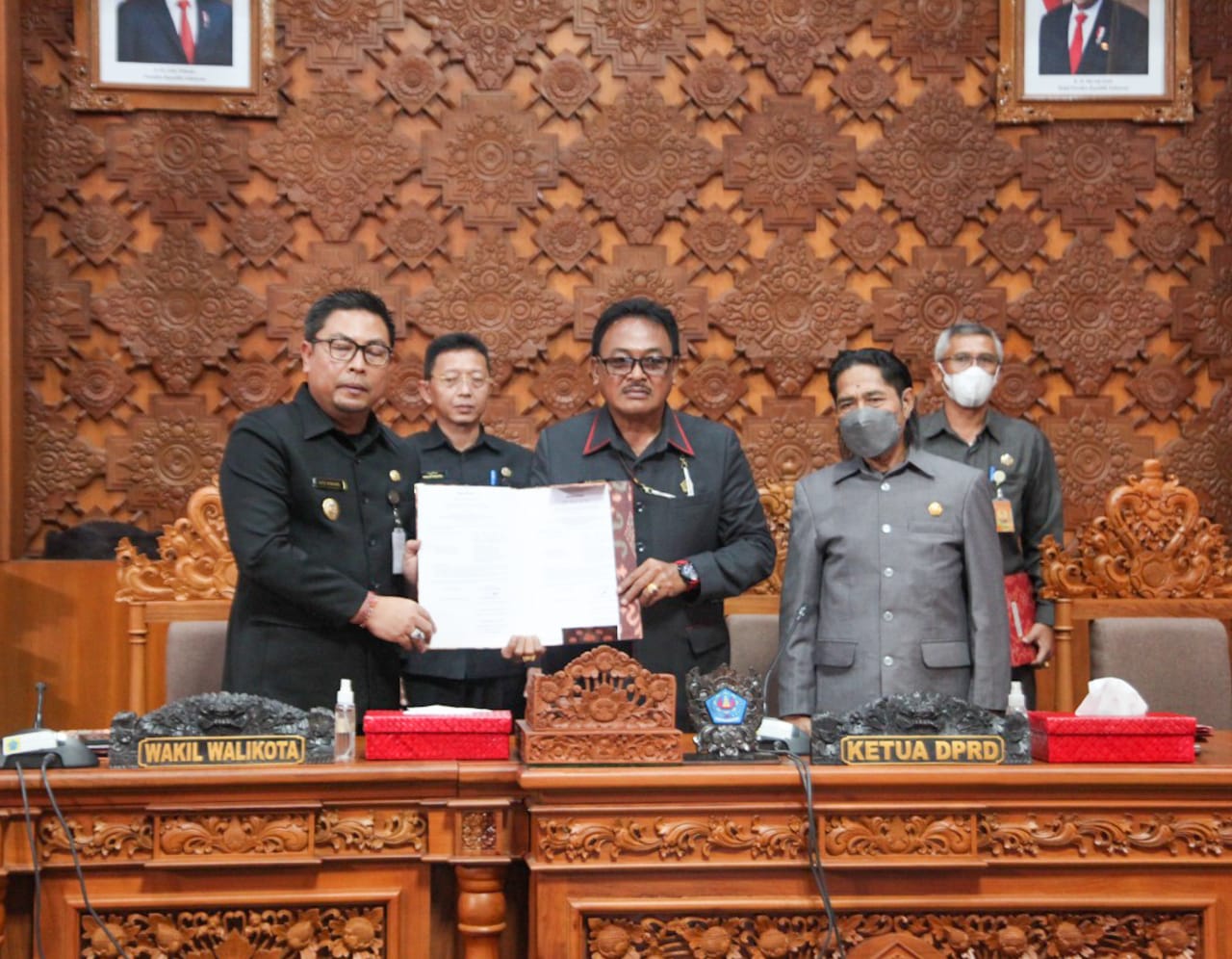 Sidang Paripurna DPRD Kota Denpasar ke-7 masa persidangan II dengan agenda Pandangan Umum, Pendapat Akhir dan Persetujuan Fraksi terhadap Ranperda Pertanggungjawaban Pelaksanaan APBD Kota Denpasar TA. 2021 digelar Senin (27/6).