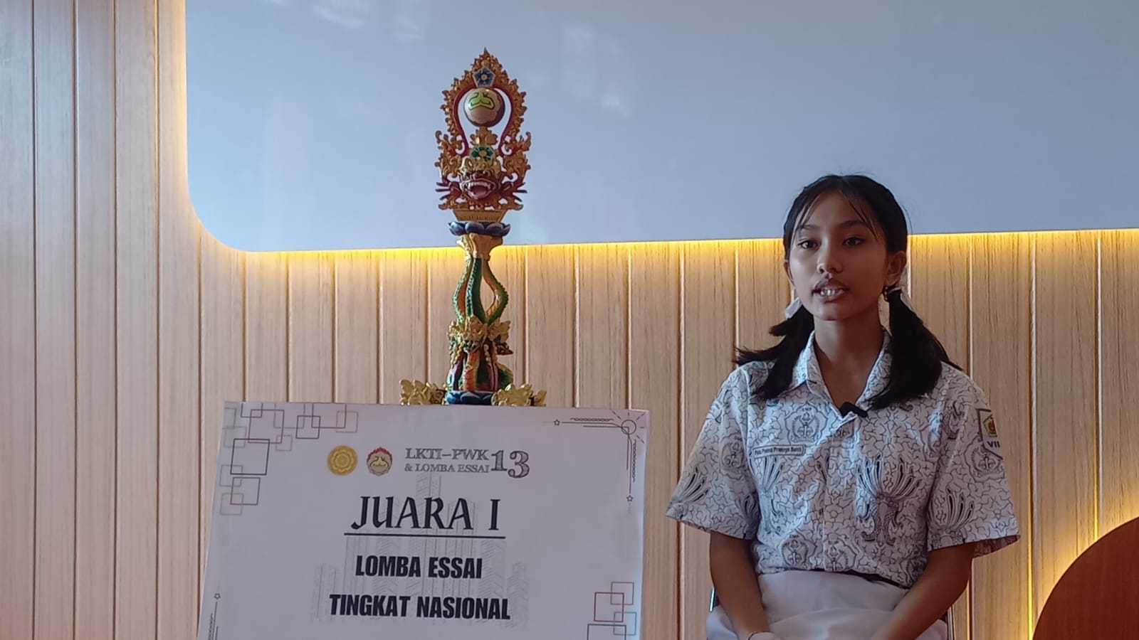 Salah satu siswa yang berhasil meraih juara dalam lomba essay tingkat nasional adalah Putu Prema Pranaya Santi. Siswa yang akrab disapa Naya itu menceritakan bahwa karyanya berjudul “Web Edukasi Polusi Udara” (WEPU) terinspirasi dari ketertarikannya terhadap polusi udara di sekitar kota. Dengan menggunakan aplikasi Air Visual, Putu berhasil menciptakan sebuah web edukasi yang terintegrasi dengan aplikasi tersebut.