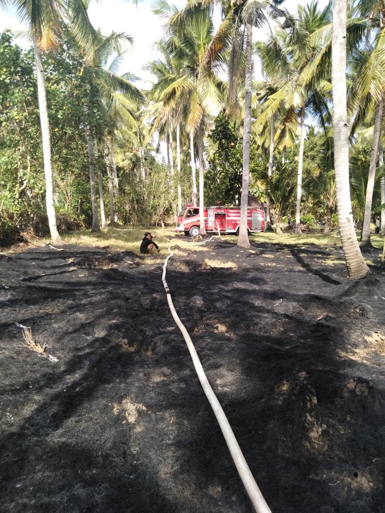Kasi Pemadam Kebakaran pada Sat Pol PP Jembrana Kade Bagus Darmawan, Senin (19/8) membenarkan adanya kejadian kebakaran tersebut. Menurutnya yang terbakar merupakan rumput dan ilalang pada tegalan (kebun) kelapa.