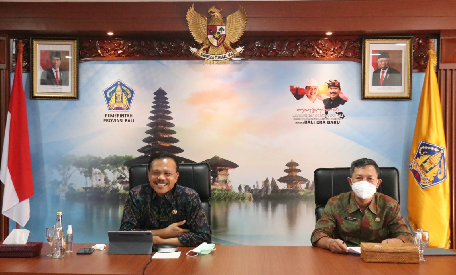 Sekretaris Daerah Provinsi Bali Dewa Made Indra didampingi Kepala Biro Organisasi Setprov Bali I Wayan Sarinah memaparkan berbagai terobosan di bidang Reformasi Birokrasi (RB) dan Sistem Akuntabilitas Kinerja Instansi Pemerintahan (SAKIP) Pemprov Bali. Paparan itu disampaikan secara online melalui aplikasi zoom meeting kepada Tim KemenPAN-RB di Jakarta, Selasa (14/9/2021). Paparan juga diikuti Kepala OPD Pemprov Bali di kedudukan masing-masing yang terhubung secara virtual.