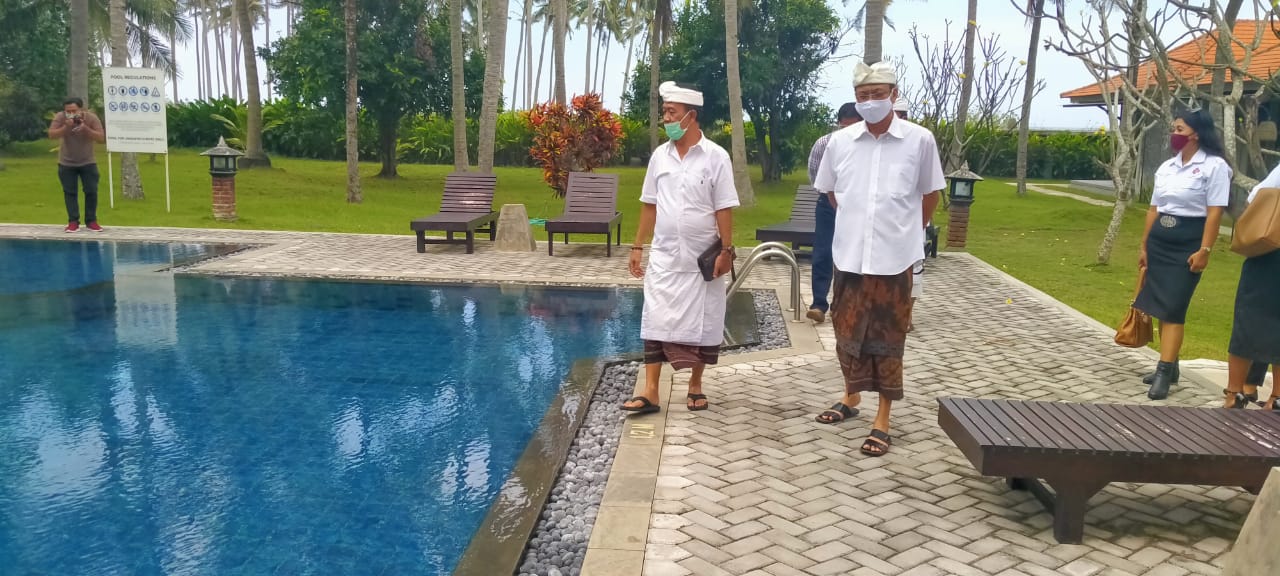 Pengecekan kesiapan new normal bertepatan dengan hari raya Pagerwesi, Rabu (8/7) dilakukan terhadap sejumlah hotel di Kecamatan Pekutatan, diantaranya Hotel Umadewi dan Hotel Bombora.