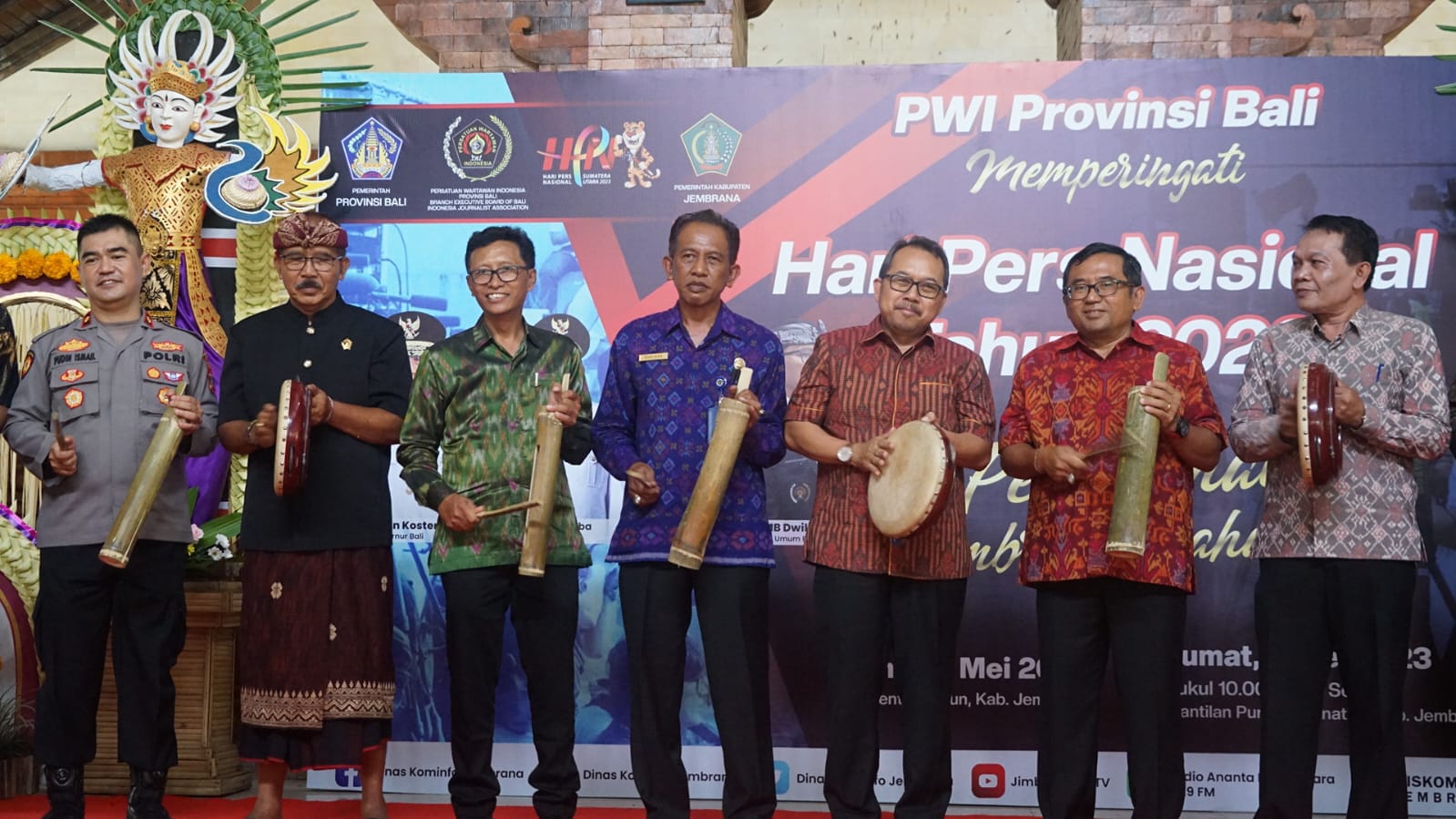 Peringatan Hari Pers Nasional (HPN) di Provinsi Bali 2023 dipusatkan di Wantilan Pura Jagatnatha, Kabupaten Jembrana, Jumat (5/5). Peringatan HPN yang diselenggarakan, Persatuan Wartawan Indonesia (PWI) Bali itu turut menyerahkan PWI Bali Nugraha 2023.