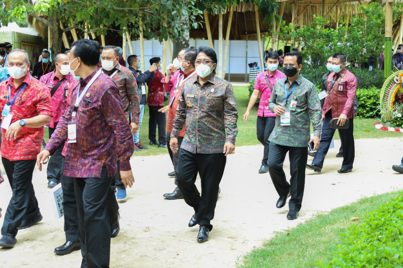 Sementara Gubernur Bali Wayan Koster menyampaikan, pandemi covid-19 menjadi momentum dan menyadarkan bahwa perekonomian bali yang didominasi satu sektor pariwisata ternyata sangat rentan karena perubahan faktor eksternal seperti gangguan keamanan, bencana alam dan bencana lainnya. Sekarang sudah saatnya perekonomian bali bangkit, oleh karena itu Pemerintah Provinsi Bali merumuskan konsep ekonomi Kerthi Bali menuju bali era baru yaitu harmonis pada alam lingkungan, menjaga kearifan lokal, berkualitas, tangguh, berdaya saing dan berkelanjutan. Konsep ekonomi Kerthi Bali terdiri dari 6 (enam) sektor unggulan yaitu; pertanian dalam sistem pertanian organik, kelautan dan perikanan, industri, IKM dan UMKM dan Koperasi, ekonomi kreatif dan digital serta pariwisata berbasis budaya yang berorientasi pada kualitas. “Kami bersyukur dan sangat berterima kasih kepada Bapak Presiden yang menjadikan ekonomi Kerthi Bali sebagai konsep transformasi perekonomian bali yang diinisiasi oleh Bapak Menteri PPN/Kepala Bappenas. Kami berharap konsep ini dapat dilaksanakan pada tahun 2022 serta bertahap dan berlanjut sampai menjadi percontohan yang sukses,” tambahnya.