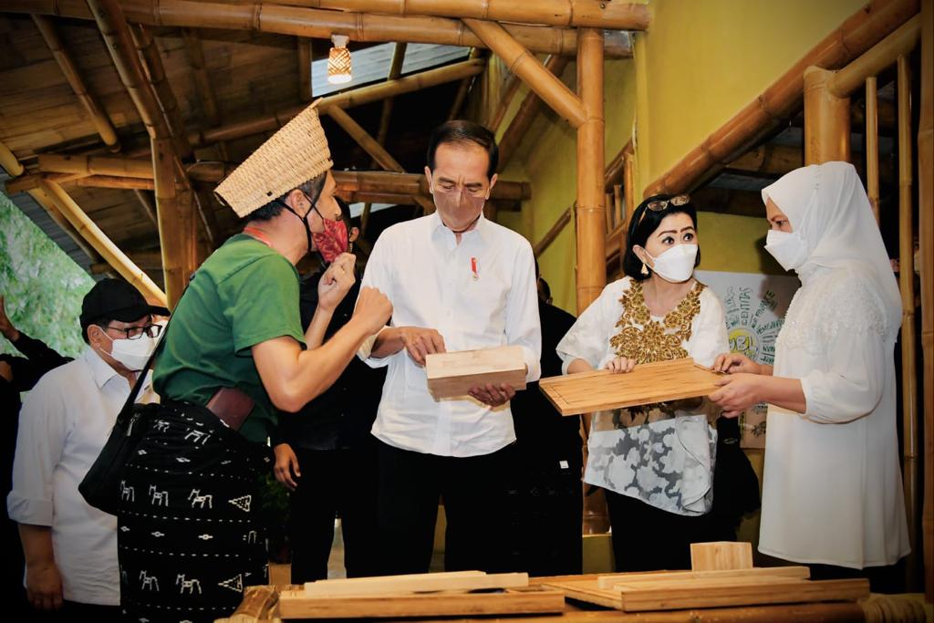 Berkunjung ke Kampus Bambu Turetogo, Kabupaten Ngada, Provinsi Nusa Tenggara Timur (NTT), pada Rabu, 1 Juni 2022, Presiden Joko Widodo dan Ibu Iriana Joko Widodo berkesempatan melihat berbagai produk bambu, seperti sepeda bambu yang dinamai Spedagi, bambu laminasi yang dapat digunakan untuk tiang, dinding, hingga lantai.