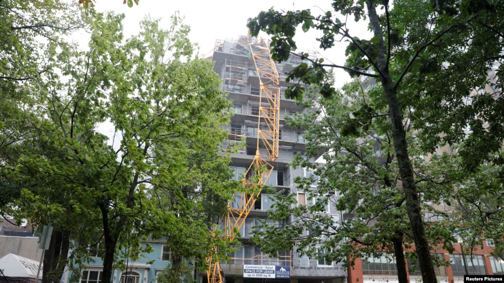 Sebuah mesin derek yang menimpa konstruksi setelah terhempas angin Badai Dorian di Halifax, Nova Scotia, Kanada, 7 September 2019.