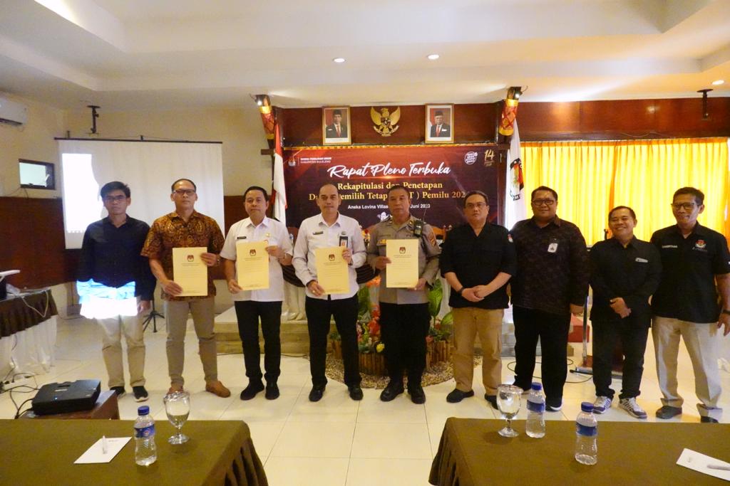 Acara diakhiri dengan penyerahan salinan SK KPU Kabupaten Buleleng Nomor 438 Tahun 2023 tentang Penetapan Daftar Pemilih Tetap pada komisi Pemilihan Umum Kabupaten Buleleng Tahun 2023 kepada Ketua KPU Provinsi Bali dan Berita Acara No 437/PL.01.2-BA/5108/2023 tentang Rekapitulasi Daftar Pemilih Tetap (DPT) Tingkat Kabupaten Buleleng pada Pemilihan Umum Tahun 2023 kepada stakeholder terkait dan partai Politik Peserta Pemilu Tahun 2024.