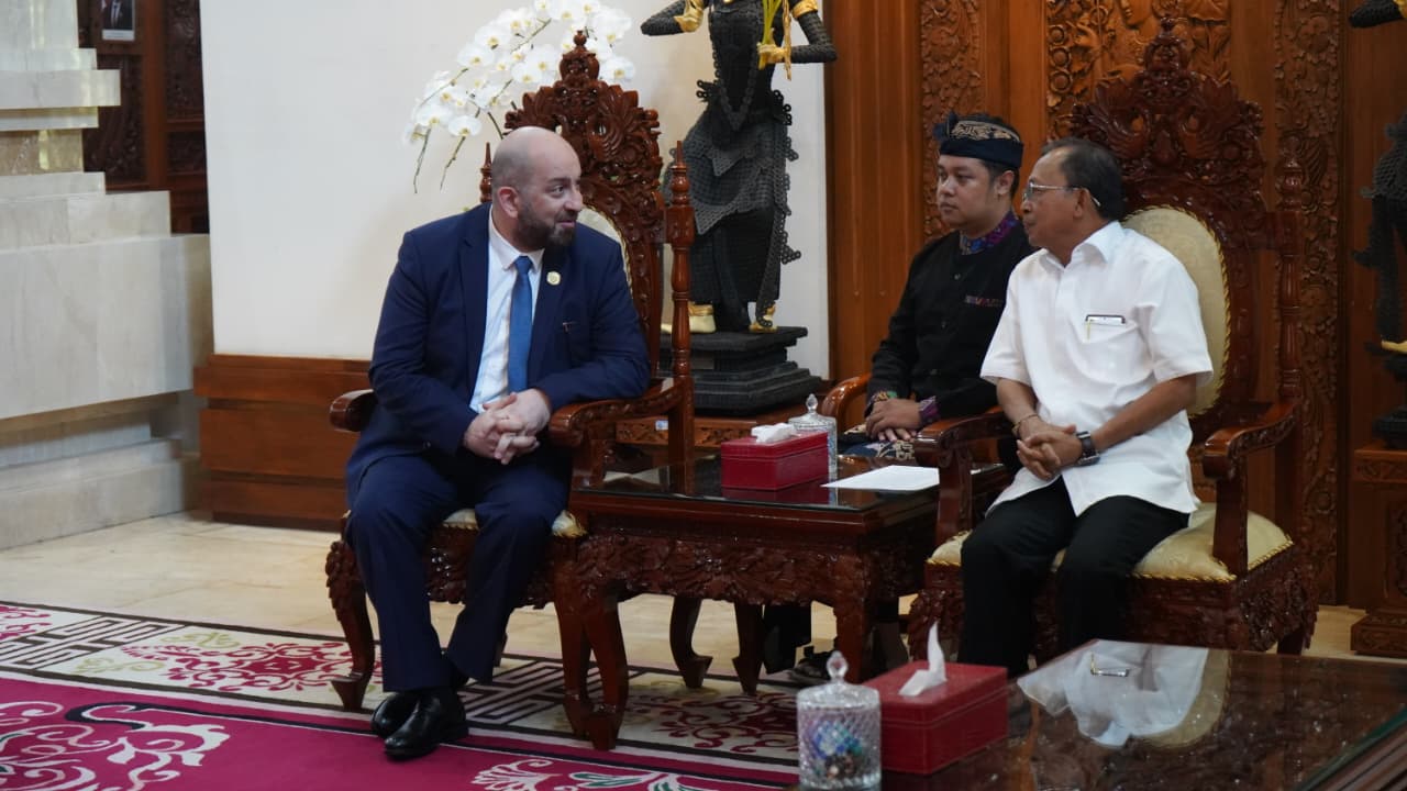 Duta Besar Georgia untuk Indonesia, Mr. Tornike Nozadze, melakukan kunjungan ke Bali dan bertemu dengan Gubernur Bali Wayan Koster, bertempat di Jaya Sabha, Denpasar, pada Rabu (3/9). Dalam pertemuan tersebut, Dubes menyampaikan apresiasi atas kesempatan yang diberikan untuk berdialog dengan Pemerintah Provinsi Bali.