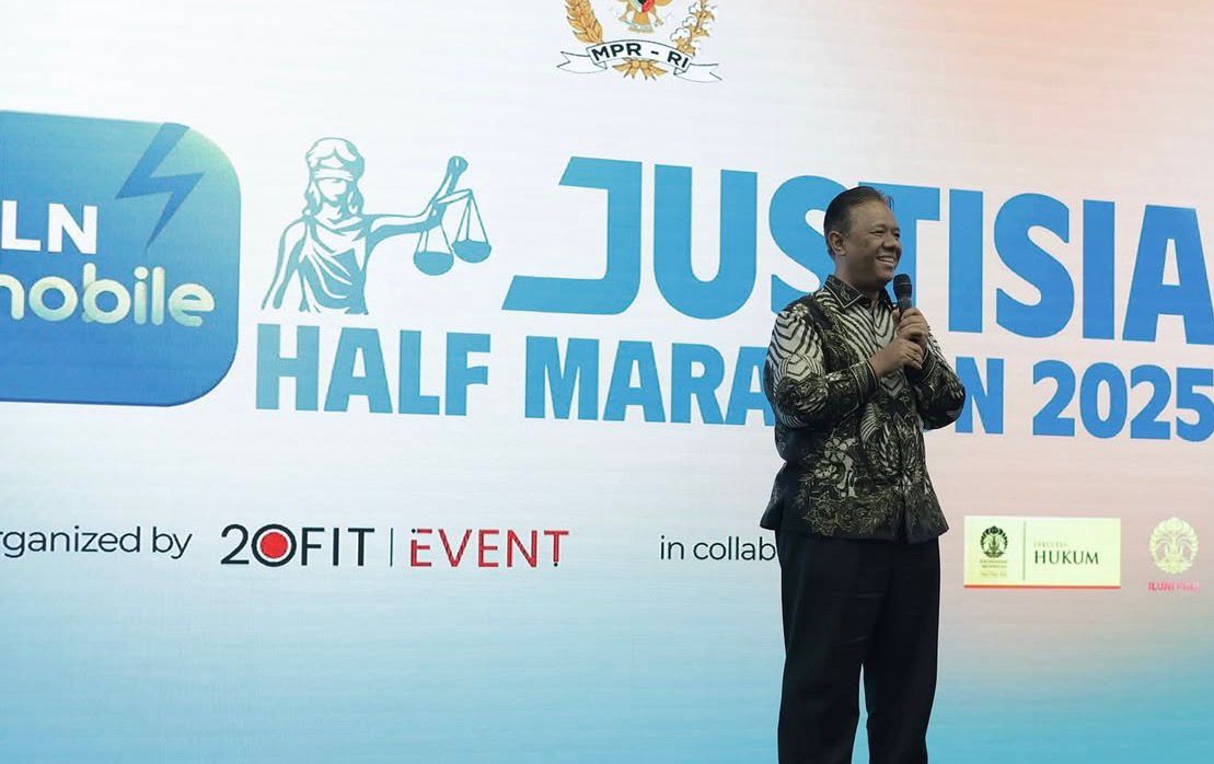 Caption: Dir LHC PLN Yusuf Didi Setiarto saat menyampaikan kata sambutan di launching even Justisia Half Marathon 2025 di Gedung DPR MPR yang disponsori PLN/foto: ist