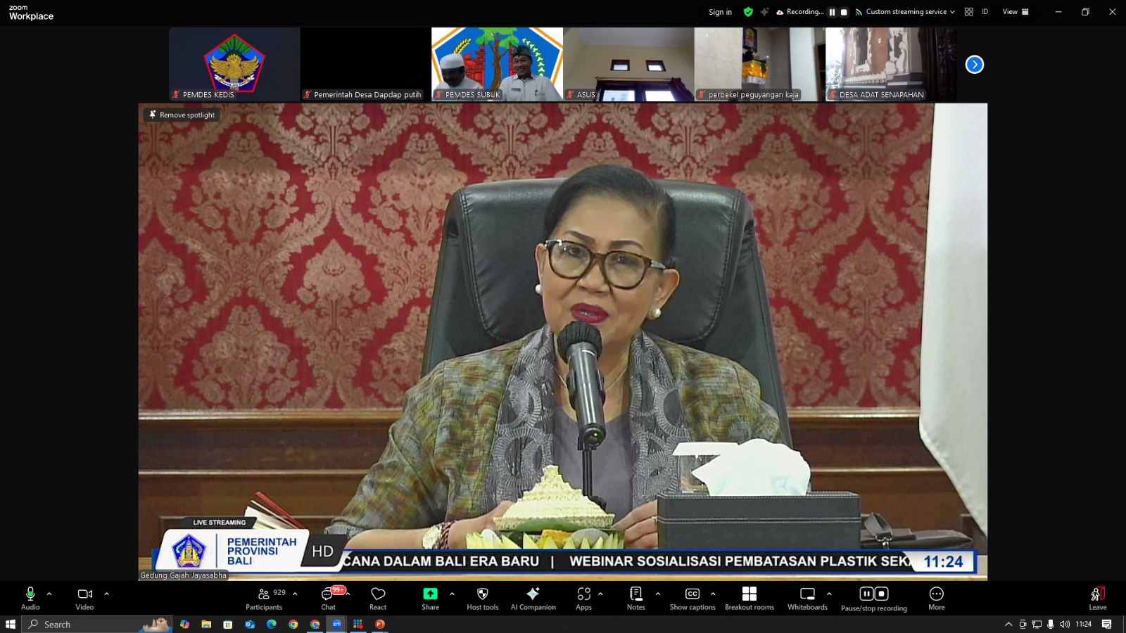 Dalam webinar tersebut, juga dibahas peran prajuru desa adat dalam pengawasan dan pengendalian kegiatan di wilayahnya masing-masing. Salah satu tugas penting yang diemban adalah menerapkan sanksi adat kepada krama yang telah diputuskan melalui paruman desa adat, sebagai bentuk dukungan terhadap sistem pengelolaan sampah berbasis sumber.