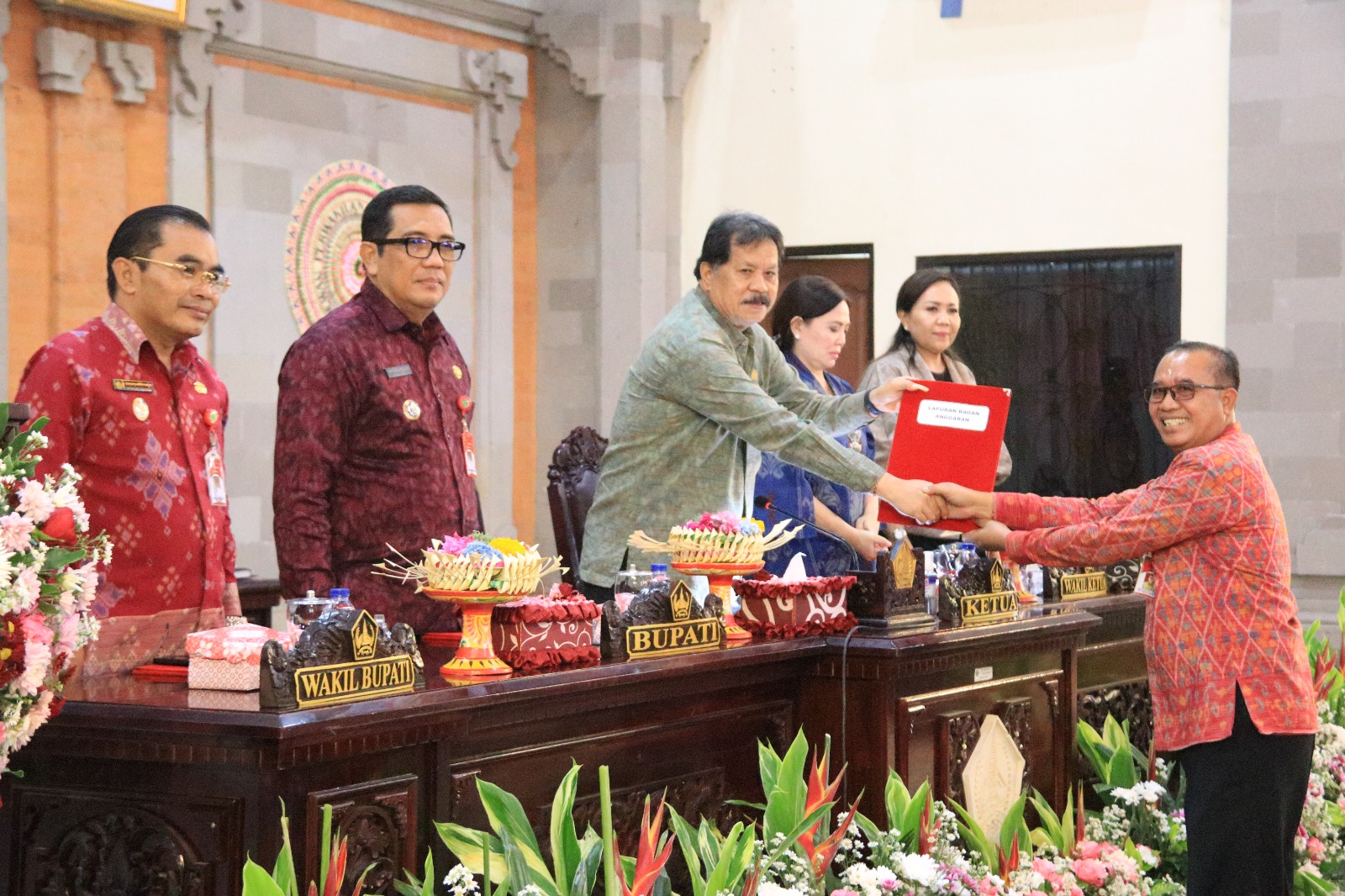 Rapat Paripurna DPRD Kabupaten Tabanan, Ke -12 Masa Persidangan III Tahun 2023 yang dihadiri oleh Bupati Tabanan, Dr. I Komang Gede Sanjaya.,S.E.,M.M menjadi momen penting atas disetujuinya 2 Buah Rancangan Peraturan Daerah setelah melalui kajian dan pembahasan, sesuai dengan mekanisme yang berlaku. Rapat berlangsung di Ruang Rapat DPRD Kabupaten Tabanan, Sabtu (9/9).