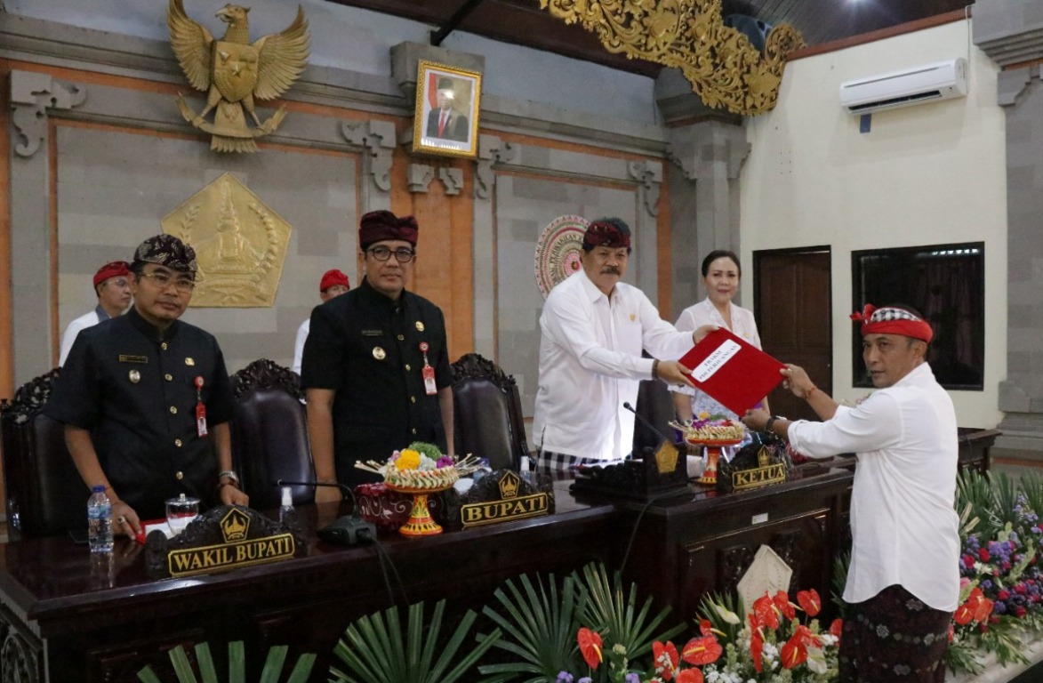 Bupati Tabanan Dr. I Komang Gede Sanjaya, SE, MM, menghadiri Rapat Paripurna tentang Pemandangan Umum Fraksi DPRD terhadap pidato pengantar terkait dua (2) Ranperda Eksekutif dan Pendapat Bupati Tabanan terhadap Pidato Pengantar terkait dua (2) Ranperda Inisiatif, Rabu, (23/11), di aula rapat kantor DPRD Kabupaten Tabanan.