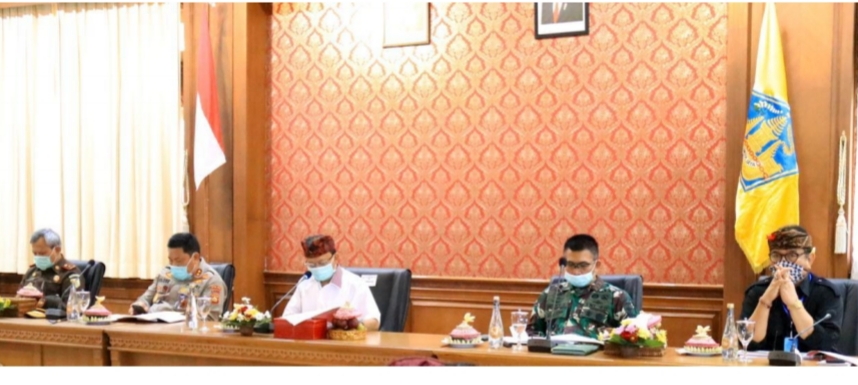 Dalam rangka memantapkan percepatan penanganan COVID-19, Gubernur Bali memimpin Rapat Gugus Tugas Percepatan Penanganan COVID-19 di Provinsi Bali, tanggal Jumat 9 April 2020 di Jaya Sabha.