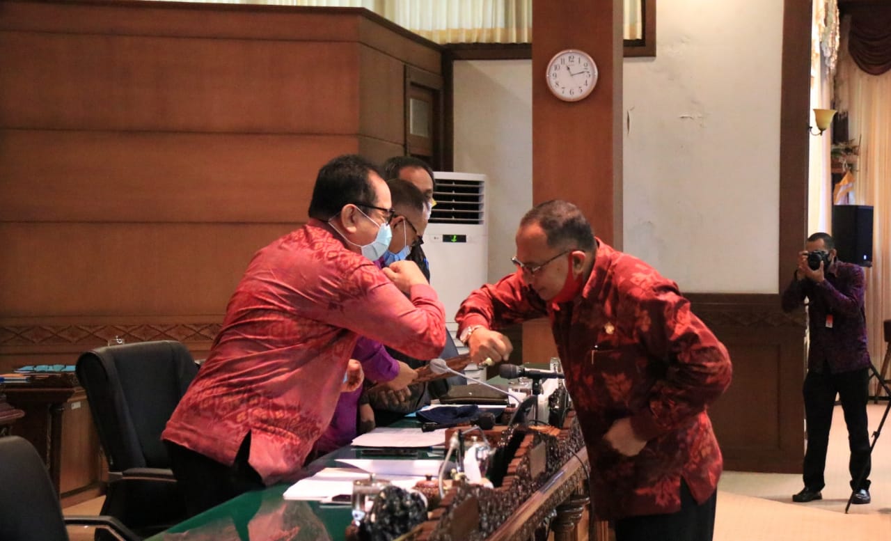 Gubernur Bali Wayan Koster menyampaiakan apresiasi dan terima kasih atas disetujuinya dua rancangan peraturan daerah (Raperda). Yakni Ranperda tentang Pertanggungjawaban Pelaksanaan Anggaran Pendapatan dan Belanja Daerah Semesta Berencana Provinsi Bali Tahun Anggaran 2019 serta Raperda tentang Rencana Umum Energi Daerah Provinsi Bali Tahun 2020-2050. Apresiasi tersebut disampaikan melalui pidato yang dibacakan oleh Wakil Gubernur Bali Tjokorda Oka Artha Ardana Sukawati (Cok Ace) pada Rapat Paripurna ke-10 DPRD Provinsi Bali Masa Persidangan II Tahun 2020 dengan agenda Sikap/Keputusan dewan, di Ruang Sidang Utama, Kantor DPRD Provinsi Bali, Denpasar (21/7).