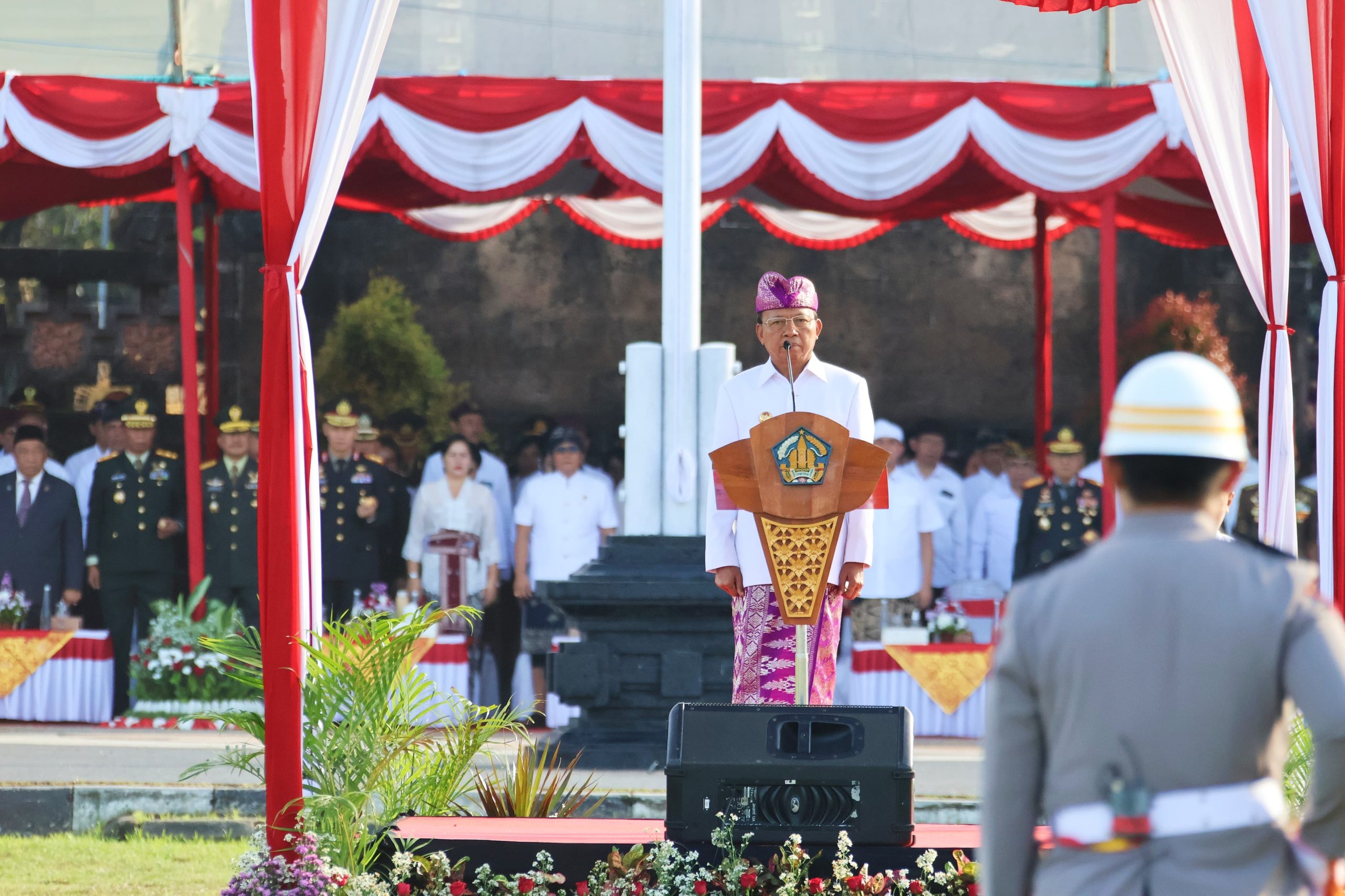 Gubernur Bali Wayan Koster bertindak selaku inspektur upacara pada peringatan Hari Lahir Pancasila Tahun 2025 yang dilaksanakan di Lapangan Puputan Margarana Niti Mandala Denpasar, Senin (2/6/2025). Membacakan sambutan Kepala Badan Pembinaan Ideologi Pancasila (BPIP) Yudian Wahyudi, Gubernur Koster menggelorakan semangat seluruh elemen masyarakat untuk memperkokoh ideologi Pancasila.