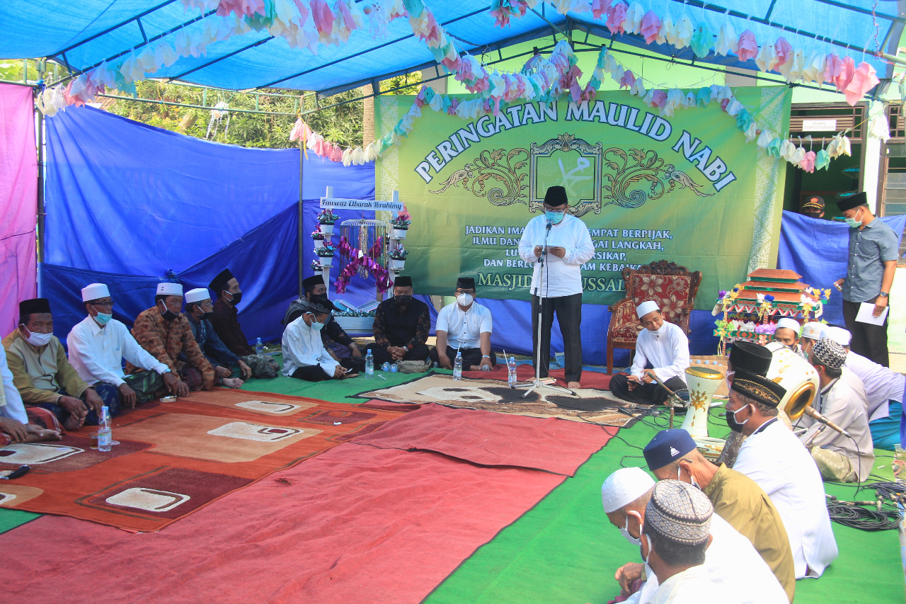 Bupati Jembrana I Putu Artha, Minggu (1/11/2020) menghadiri acara peringatan Maulid Nabi Muhammad SAW 1442 H di Masjid Darussalam, Dusun Pangkung Dedari, Kecamatan Melaya.