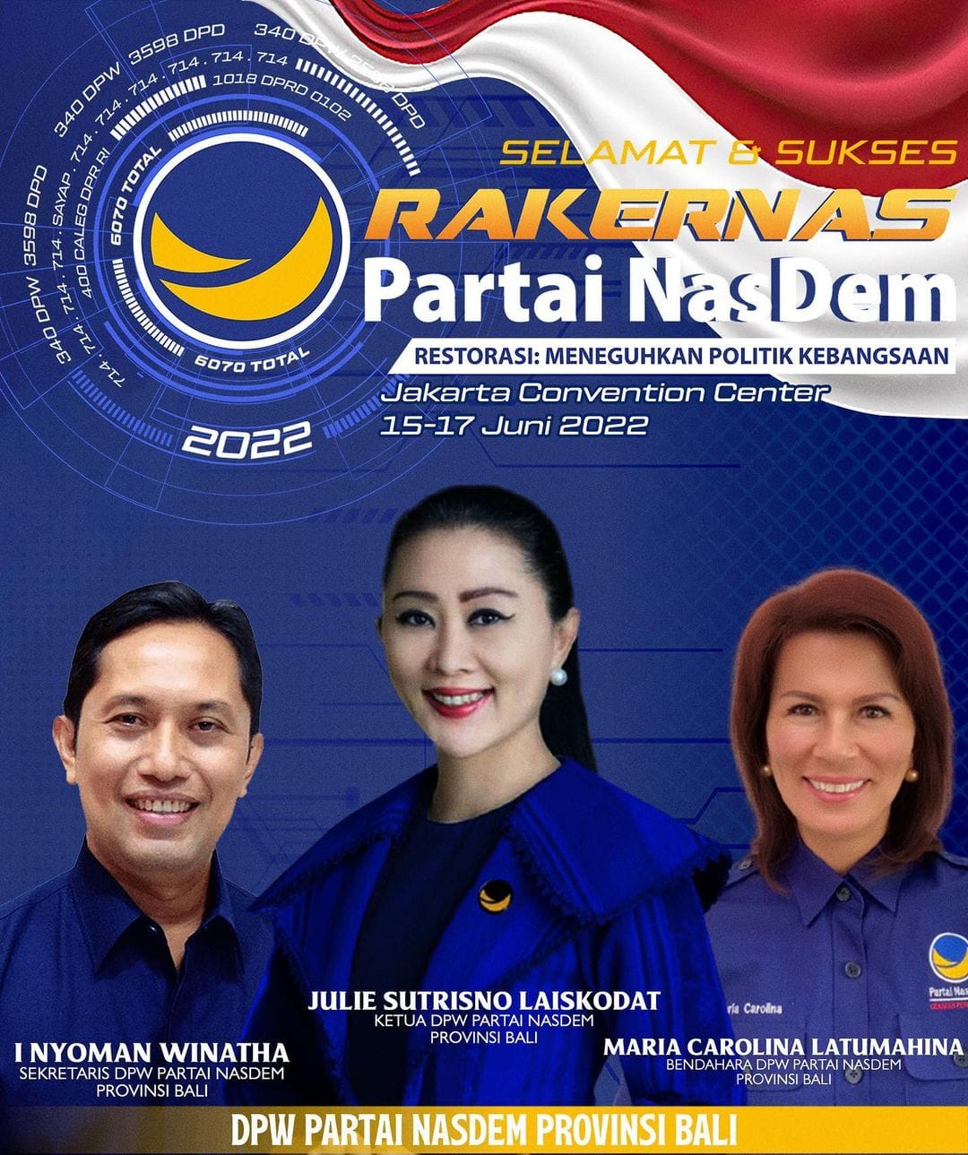 Ketua DPW Partai NasDem Provinsi Bali Julie Sutrisno Laiskodat mengungkapkan kader-kader NasDem di Bali semakin solid dan optimis menatap Pemilu 2024 pasca hasil Rakernas ini. Tentunya dengan spirit tagline “Bersatu, Berjuang, Menang”, NasDem siap memberikan yang terbaik untuk bangsa ini.