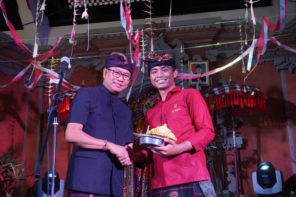 Wabup Badung Ketut Suiasa menghadiiri Puncak Perayaan HUT ST Eka Dharma Puspa Kerti ke-59 sekaligus pelantikan pengurus baru masa bakti 2019-2022 di Banjar Muding Kelod Desa Adat Kerobokan, Kec. Kuta Utara, Senin (12/8) malam.