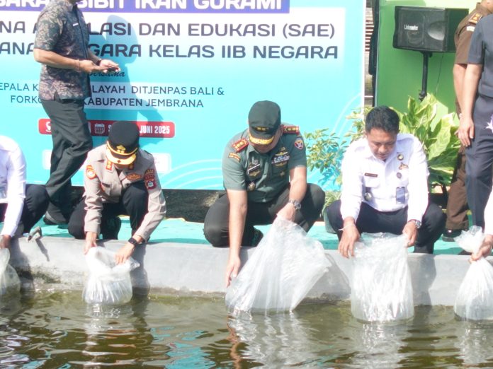 Penebaran bibit ikan secara simbolis dilakukan Kepala Rutan Kelas IIB Negara yang baru beserta para tamu undangan. Sebanyak 2.000 ekor bibit ikan gurami ditebar ke dalam kolam yang telah disiapkan sebelumnya.