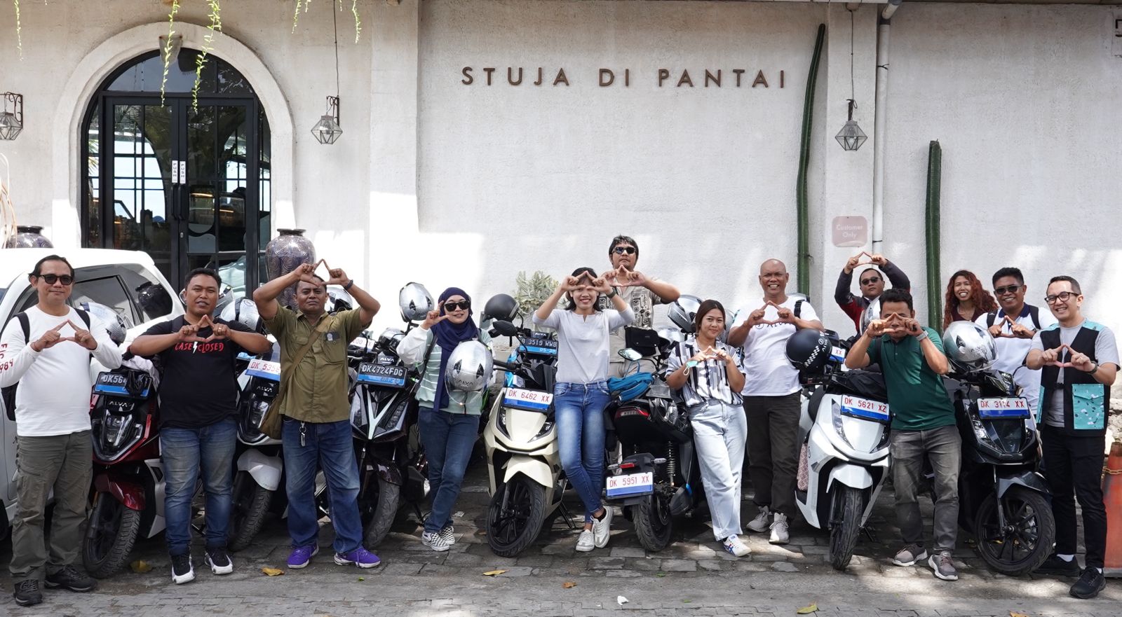 Belasan jurnalis media online di Bali menjajal ketangguhan sepeda motor listrik ALVA keliling Kota Denpasar, Kamis 8 Mei 2025.