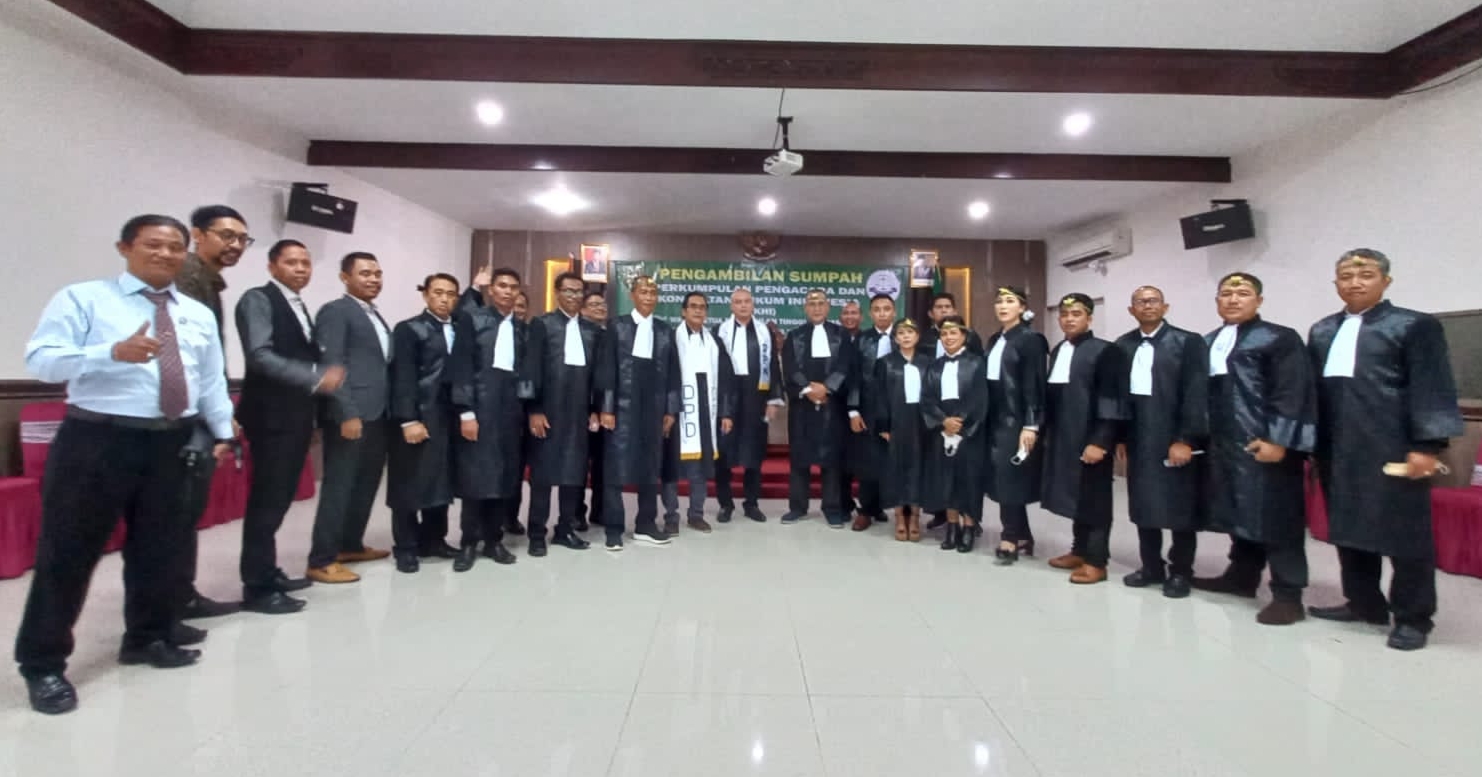 Sejumlah 16 Advokat dari Perkumpulan Pengacara dan Konsultan Hukum Indonesia (PPKHI) yang dilantik oleh Wakil Ketua Pengadilan Tinggi Denpasar, Humuntal Pane, SH, MH..serta dihadiri oleh Ketua Dewan Pembina Dewan Pimpinan Nasional (DPN PPKHI Dheky Wijaya, SH, MH.