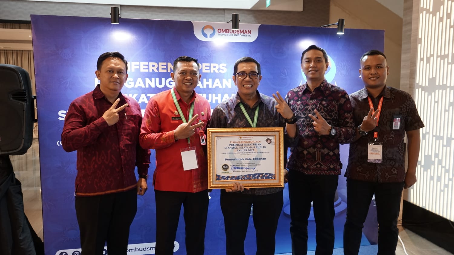 Pemerintah Kabupaten Tabanan meraih Penghargaan 10 besar Penganugerahan Predikat Kepatuhan Standar Pelayanan Publik Tahun 2022 (Opini Pengawasan Penyelenggaraan Pelayanan Publik) Tingkat Nasional dari Ombudsman RI yang diterima secara langsung oleh Bupati Tabanan, Dr. I Komang Gede Sanjaya, S.E.,M.M, di Jakarta pada (22/12).