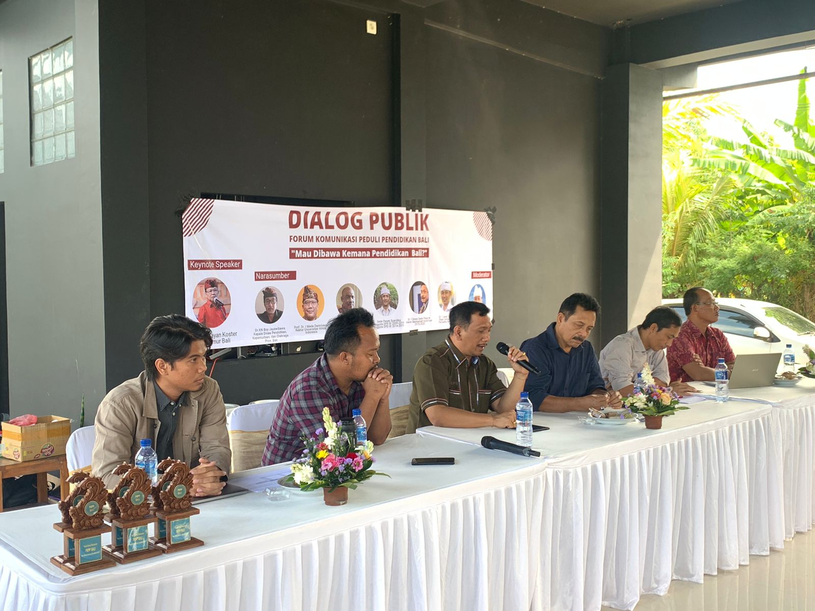 Prof Damriyasa yang diudang dalam tidak menghadiri diskusi publik yang digelar oleh beberapa organisasi mahasiswa yang tergabung Forum Komunikasi Peduli Pendidikan (FKPP) Bali. Gubernur Bali Wayan Koster dan Kepala Dinas Pendidikan Bali DR KN Boy Jayawibawa juga tidak hadir. (Sut)