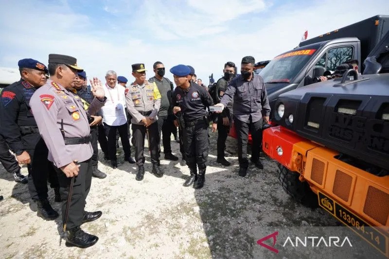 “Tadi kita cek satu-satu, peralatan kita sudah siap, baik mulai dari alat pendeteksi, alat untuk melaksanakan evakuasi, dan alat untuk penghancuran (bom) atau explosive,” ujar Kapolri.