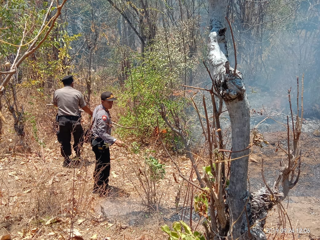 Kapolsek Tejakula jajaran Polres Buleleng AKP Nyoman Adika bersama anggota dengan sigap mendatangi TKP kebakaran lahan kebun jati di Dusun Alas Sari Desa Pacung Kecamatan Tejakula, Kabupaten Buleleng, Bali pada Selasa (24/9) sekitar Pukul 11.00 Wita.