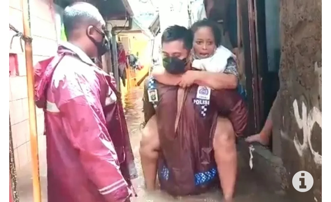 Aksi heroik kembali ditunjukkan anggota Kepolisian dalam membantu warga terdampak banjir di Jakarta, salah satunya Kapolsek Cilandak Kompol Iskandarsyah yang menggendong seorang nenek untuk dievakuasi dari rumahnya yang terendam banjir.