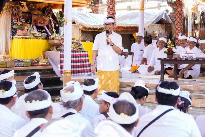 Bupati Adi Arnawa saat hadiri Karya Mapedudusan, Ngenteg Linggih di Pura Anyar, Desa Adat Umahanyar, Desa Mambal Abiansemal, Rabu (6/8).