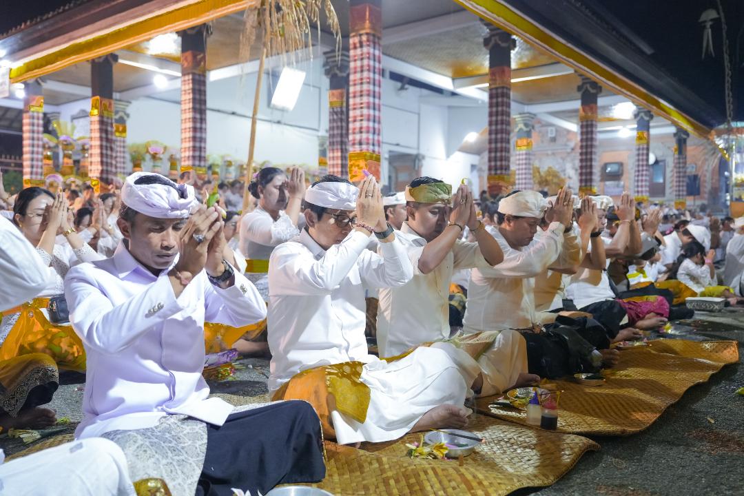 Bupati Adi Arnawa menghadiri Karya Nyatur Padudusan Alit di Pura Ulun Siwi, sekaligus menyerahkan bantuan Hibah Tanah, Hibah Perubahan Tahun 2025, Kamis (9/10).