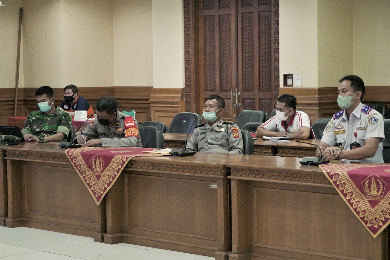 Melihat tren peningkatan kasus Covid-19 di Provinsi Bali dan di Kabupaten Badung yang kembali mengalami peningkatan, Pemerintah Kabupaten Badung mengambil satu langkah dengan menghentikan sementara pelaksanaan Pelajaran Tatap Muka (PTM). “Melihat peningkatan kasus covid, dan menindaklanjuti kebijakan pemerintah pusat dengan keluarnya surat edaran dari Kementerian termasuk arahan dari Gubernur Bali, maka di Badung untuk proses PTM dihentikan sementara,”tegas Sekda Badung I Wayan Adi Arnawa saat memimpin Rapat Pelaksanaan Penanganan Covid-19 dan Pemberhentian Sementara Pembelajaran Tatap Muka di Kabupaten Badung, bertempat di Ruang Pertemuan Kriya Gosana, Puspem Badung, Jumat (4/2). Rapat dihadiri Forkopimda Kabupaten Badung, bersama OPD terkait di Kabupaten Badung serta Camat Se-Kabupaten Badung.