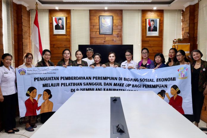 Ketua Forum Komunikasi Partisipasi Publik untuk Kesejahteraan Perempuan dan Anak (PUSPA) Kota Denpasar, Ny. Ayu Kristi Arya Wibawa menghadiri kegiatan Penguatan Pemberdayaan Perempuan di Bidang Sosial Ekonomi melalui Pelatihan Sanggul dan Tata Rias (Make Up) yang diselenggarakan oleh Dinas Sosial, Pemberdayaan Perempuan dan Perlindungan Anak Provinsi Bali bekerja sama dengan Forum PUSPA Provinsi Bali, di Kantor Desa Penatih Dangin Puri, Kecamatan Denpasar Timur, Rabu (11/3).